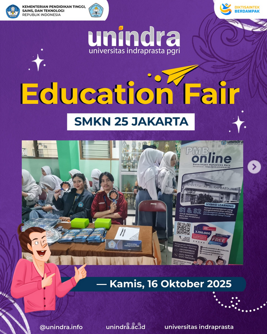 Hai teman-teman semua, Kamis, 16 Oktober 2025. Universitas Indraprasta PGRI (UNINDRA) hadir meramaikan Education Fair di SMKN 25 Jakarta!!