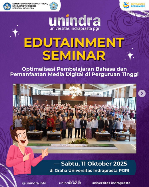 Hai teman-teman semua, pada Sabtu, 11 Oktober 2025, Unindra (Universitas Indraprasta PGRI) an Penerbit Erlangga dengan bangga mempersembahkan Seminar Edukasi dan Hiburan yang sangat relevan untuk perkembangan pendidikan di era digital!