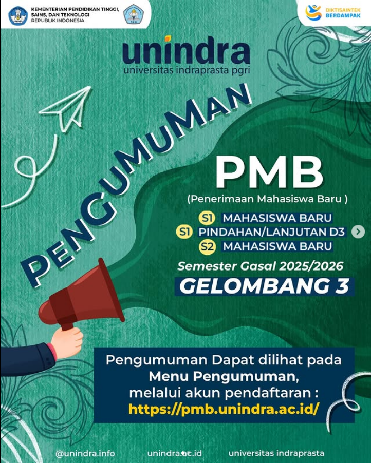 INFORMASI PENGUMUMAN PMB (Pendaftaran Mahasiswa Baru ) GELOMBANG 3 SEMESTER GASAL TAHUN AKADEMIK 2025/2026