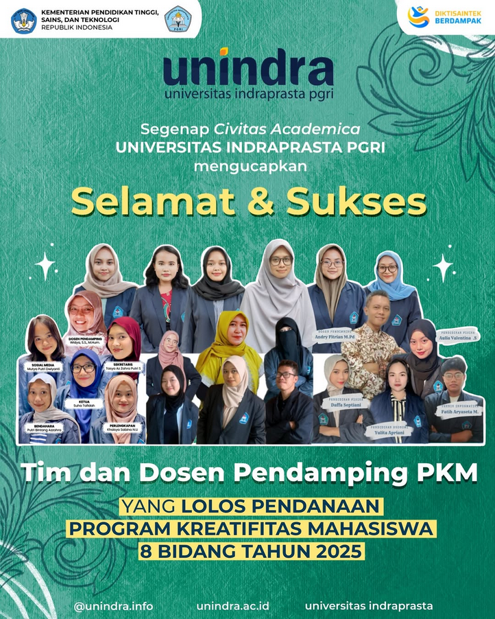 Selamat dan Sukses Untuk Tim dan Dosen Pendamping PKM Unindra yang Lolos Pendanaan Program Kreativitas Mahasiswa 8 Bidang tahun 2025