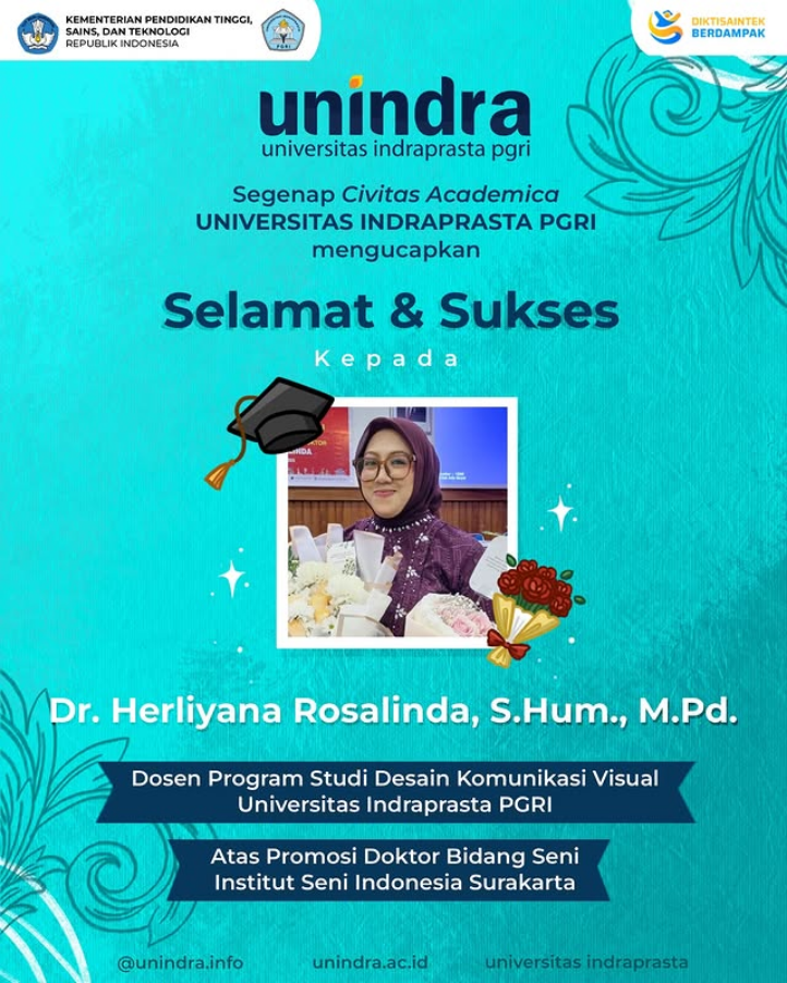 Selamat & Sukses Kepada Dr. Herliyana Rosalinda, S.Hu., M.Pd. Dosen Program Studi Desain Komunikasi Visual Indraprasta PGRI Atas Promosi Doktor Bidang Seni Institut Seni Indonesia Surakarta