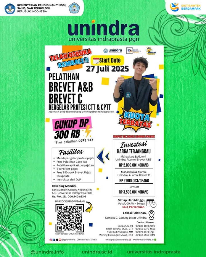 🤝Daftar segera di Pelatihan Pajak Terpadu BREVET A B di Lembaga Pendidikan dan Pelatihan *(LPP UNINDRA)🤝