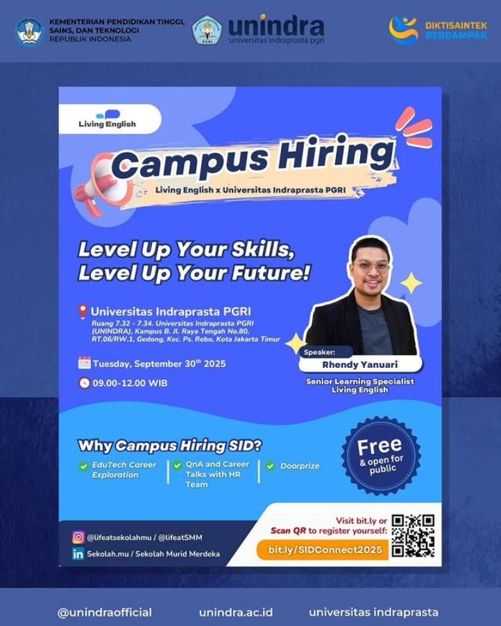 Acara ini gratis untuk alumni dan mahasiswa Unindra termasuk mahasiswa/fresh graduate.