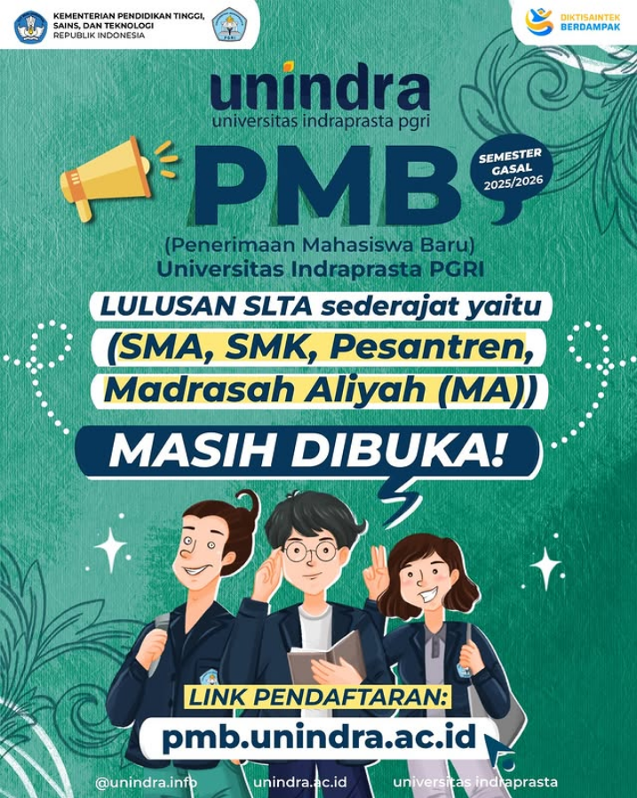Hai adik-adik lulusan SLTA SEDERAJAT Saat ini pendaftaran mahasiswa baru #Unindra MASIH DIBUKA. bagi adik-adik yang ingin kuliah di kampus Universitas Indraprasta PGRI. Yuk segera daftar dan upload semua berkas.