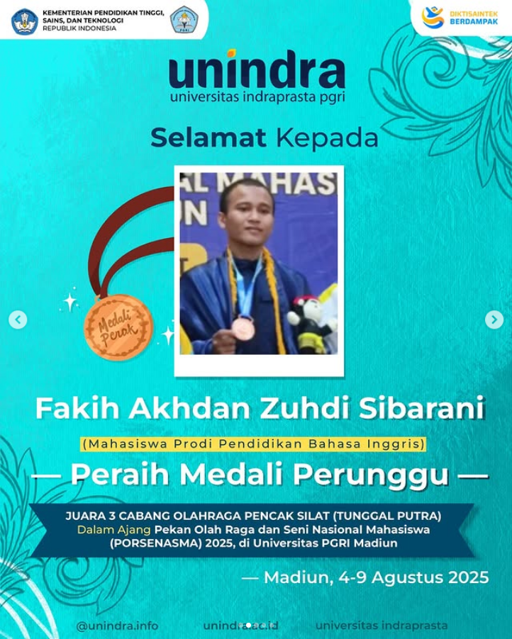Segenap Civitas Academica Universitas Indraprasta PGRI mengucapkan Terimakasih banyak kepada “Kontingen Universitas Indraprasta PGRI “ Pada Pekan Olahraga dan Seni Nasional Mahasiswa ( PORSENASMA ) 2025 4-9 AGUSTUS 2025 Di Universitas PGRI MADIUN.